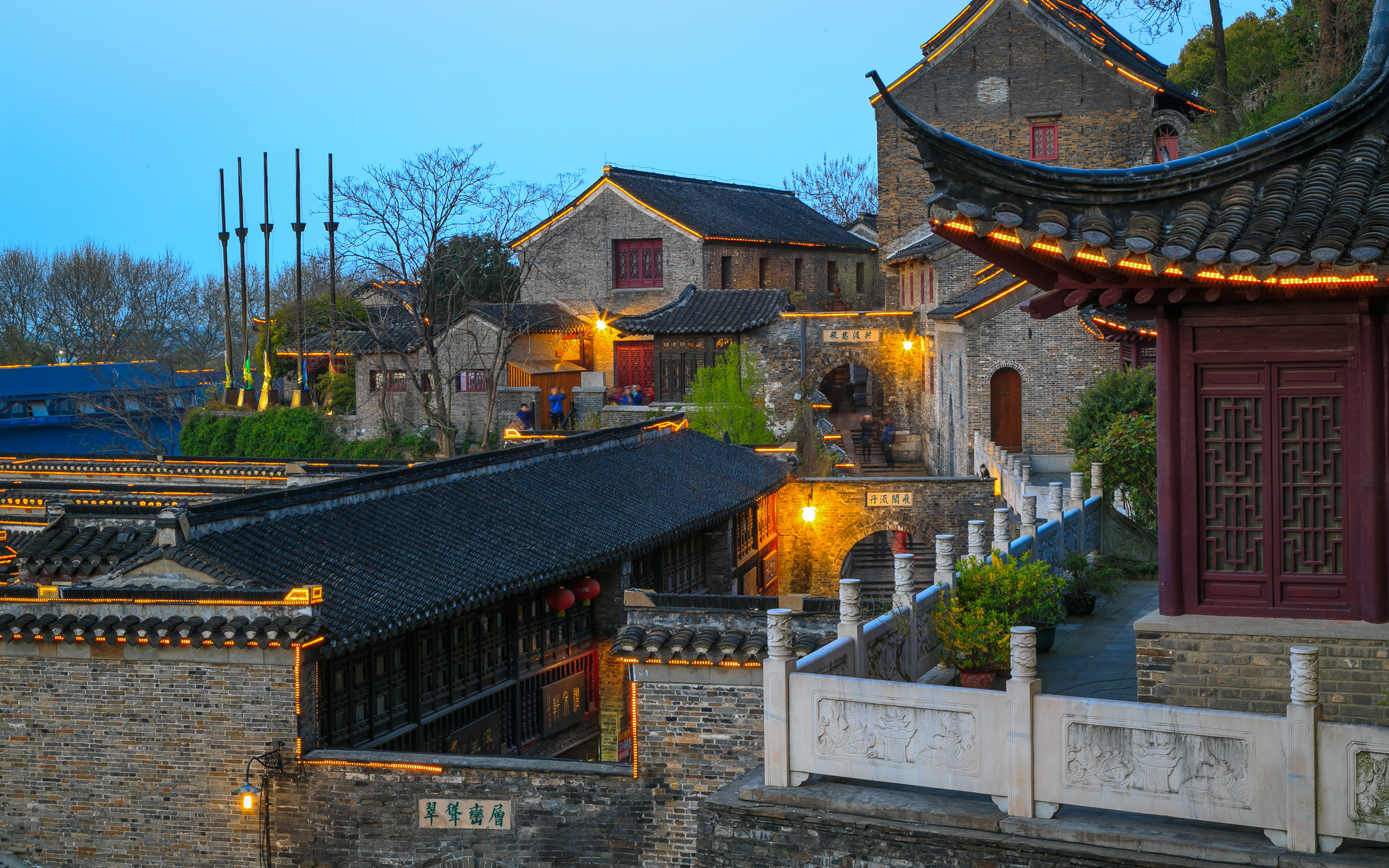 千华古村千华古村,是镇江的绝美小众古村。依山而建的古村,建筑都是仿明清风格,街巷纵横交错,古色古香。古村的夜景很美,华灯初上,亮起的红灯笼超有氛围感,仿佛踏入了现实版的“千与千寻”中。